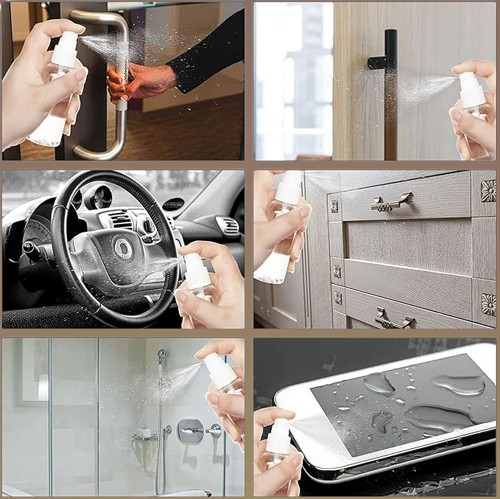This refillable fine mist sanitizer spray bottle is perfect for multiple uses including home cleaning, bathroom hygiene, kitchen sanitation, aromatherapy sprays, and travel needs. It is compatible with medical alcohol, essential oils, hand sanitizer, beauty products, cooking oil spray, and other personal care liquids. Designed to be durable and reusable, it should be kept away from high-temperature environments. Ideal for DIY beauty and skincare formulations.